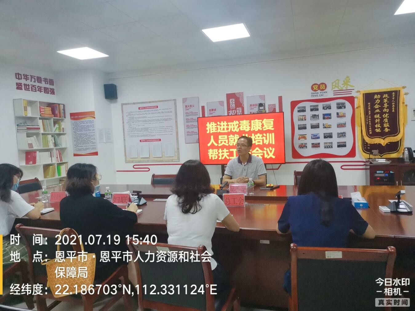 2021年7月19日,為進(jìn)一步推動我市戒毒康復(fù)人員就業(yè)培訓(xùn)幫扶工作,鼓勵更多戒毒康復(fù)人員積極參加公益性培訓(xùn),提高自身就業(yè)技能水平,恩平市人力資源和社會保障局聯(lián)合市司法局、市農(nóng)業(yè)農(nóng)村局、市總工會、市婦聯(lián)等有關(guān)部門,召開推進(jìn)戒毒康復(fù)人員就業(yè)培訓(xùn)幫扶工作會議。