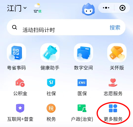 一、打開微信“粵省事”→點擊“更多服務(wù)”