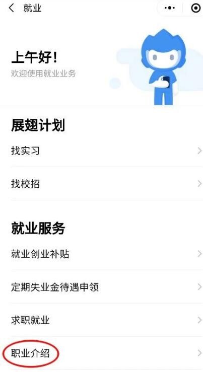 二、點擊“就業(yè)”→點擊“職業(yè)介紹”→點擊“開始辦理”