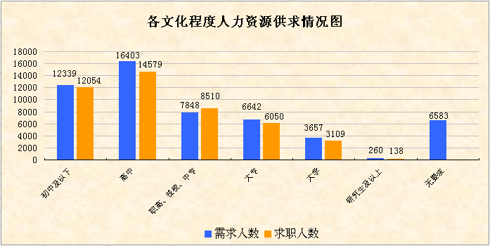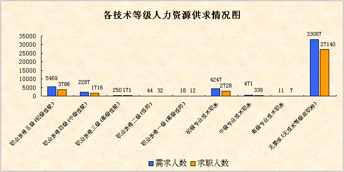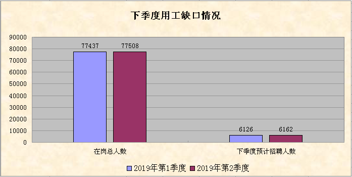 第二季度,從企業(yè)用工及人力資源服務(wù)平臺信息系統(tǒng)和全市人力資源服務(wù)機(jī)構(gòu)的數(shù)據(jù)統(tǒng)計,全市用人單位登記招聘職位數(shù)共45884個,登記求職人數(shù)共35930人,總體職位供求比為1:0.78(招聘職位數(shù)為1,求職人數(shù)為 0.78,下同);全市人力資源市場總體用工缺口為9954人。