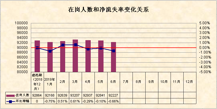 (四)全市就業(yè)失業(yè)情況無異常變動。全市200家失業(yè)動態(tài)監(jiān)測企業(yè)第二季度監(jiān)測數(shù)據(jù)顯示,企業(yè)在崗職工與上年底建檔期相比下降0.99%,用工結(jié)構(gòu)沒有出現(xiàn)大幅變動,未發(fā)現(xiàn)有大規(guī)模裁員和減員現(xiàn)象,人員流失率處于正常范圍。