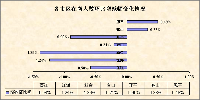 表18.各市區(qū)在崗人數(shù)環(huán)比增減幅變化情況表