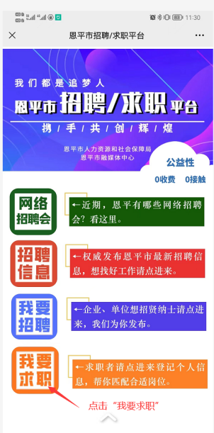 進(jìn)入“招聘求職”界面,點(diǎn)擊“我要求職”;