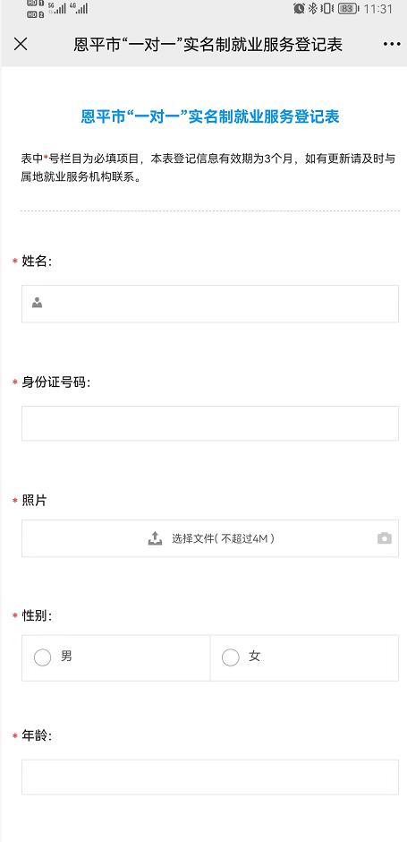 填寫“恩平市一對(duì)一實(shí)名制就業(yè)服務(wù)登記表”,求職意向(工種)填寫“就業(yè)見習(xí)崗位”。