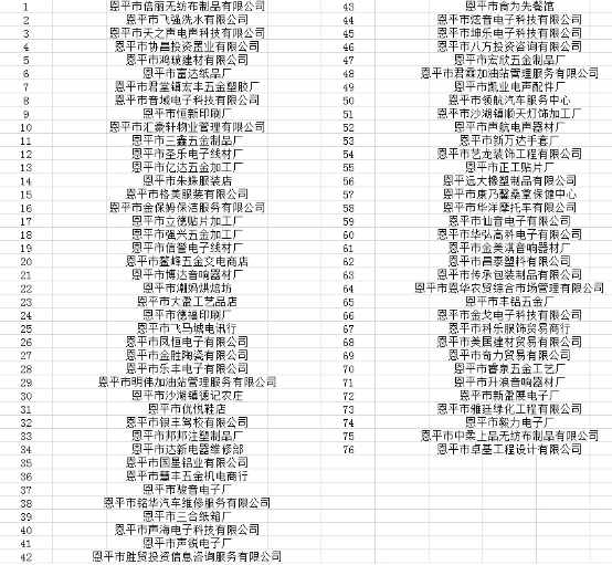 為鼓勵吸納就業(yè),企業(yè)的用工成本,使更多企業(yè)受惠,市人社局依托“江門市人力資源和社會保障網(wǎng)上服務(wù)平臺”,對照政策條件,通過對新招工、辦理網(wǎng)上用工備案以及參加社會保險等情況,初步篩查出了恩平市可能符合申領(lǐng)補貼的76家企業(yè)(企業(yè)名單詳見下圖)。趕緊看看有沒有你份!