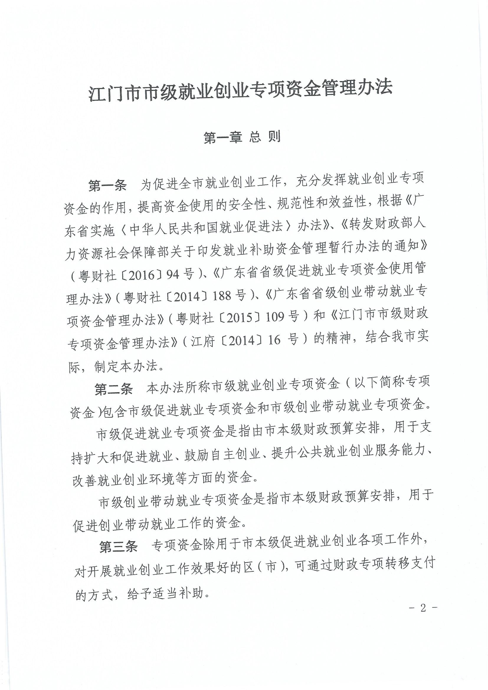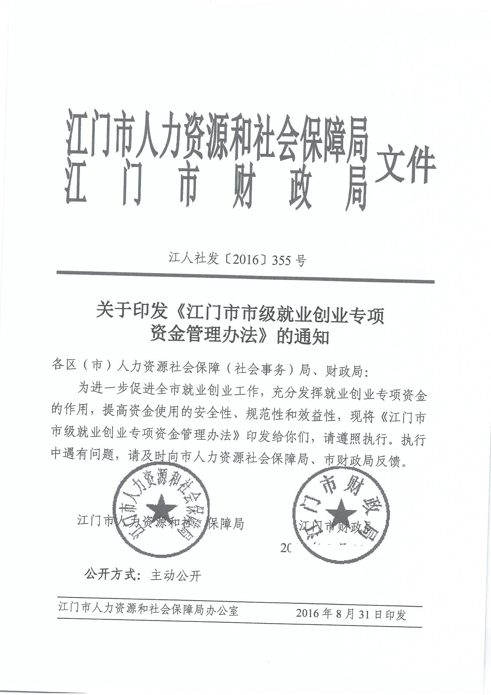 關(guān)于印發(fā)《江門市市級就業(yè)創(chuàng)業(yè)專項資金管理辦法》的通知