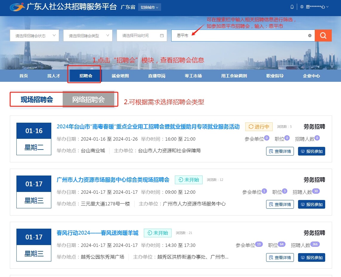 廣東人社公共招聘服務平臺招聘信息發(fā)布、招聘會報名