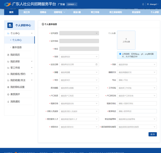 個(gè)人求職登記(網(wǎng)站端)