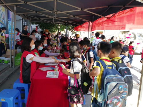 當(dāng)日下午,恩城飛鵝塘小學(xué)、飛鵝塘社區(qū)、暖心社工中心的志愿者及家長義工們來到在最繁忙的校門口路段,給路過的群眾分發(fā)創(chuàng)文宣傳小冊(cè)子,號(hào)召大家一起助力恩平創(chuàng)建文明城市。