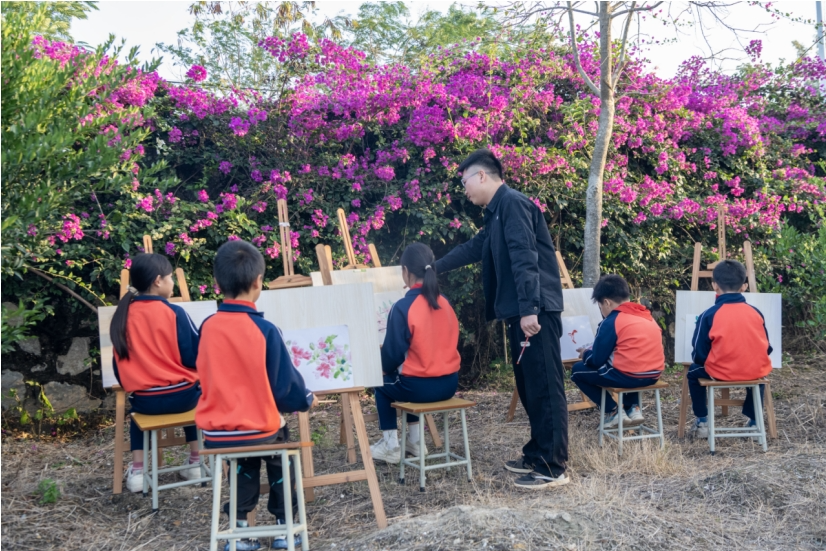 “美比牡丹艷若霓,夭勝桃花燦似霞”。今年學(xué)校的簕杜鵑花如烈焰般絢爛,色彩奪目熾熱,陽光下與勞動基地交織成一幅絢麗多彩的畫卷,把校園的東南角裝扮成一個熱烈的冬日花園。師生紛紛前來觀賞、寫生、拍照留影,好不熱鬧。
