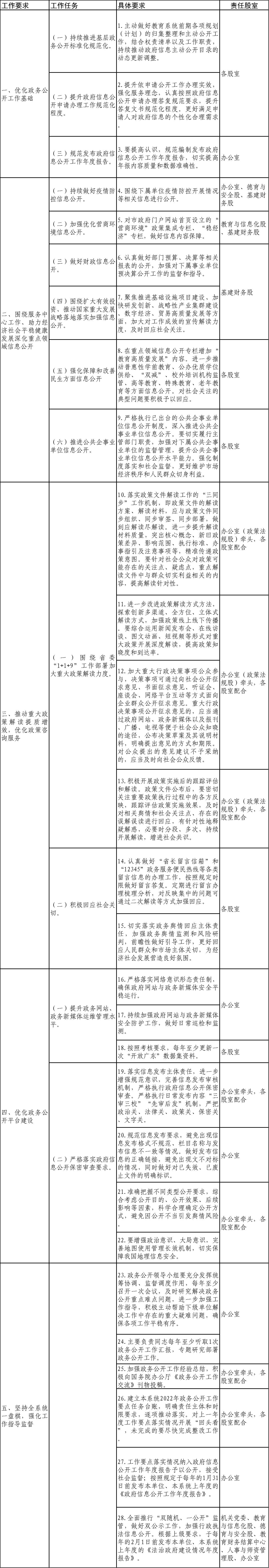 恩平市教育局2022年政務(wù)公開工作要點分工方案