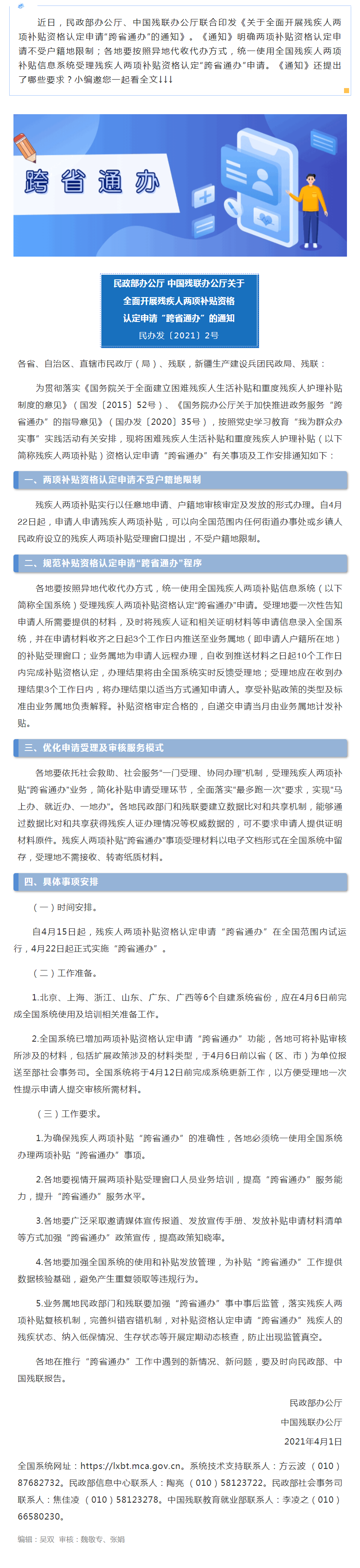 “跨省通辦”來了!今后殘疾人兩項補貼資格認定申請不受戶籍地限制