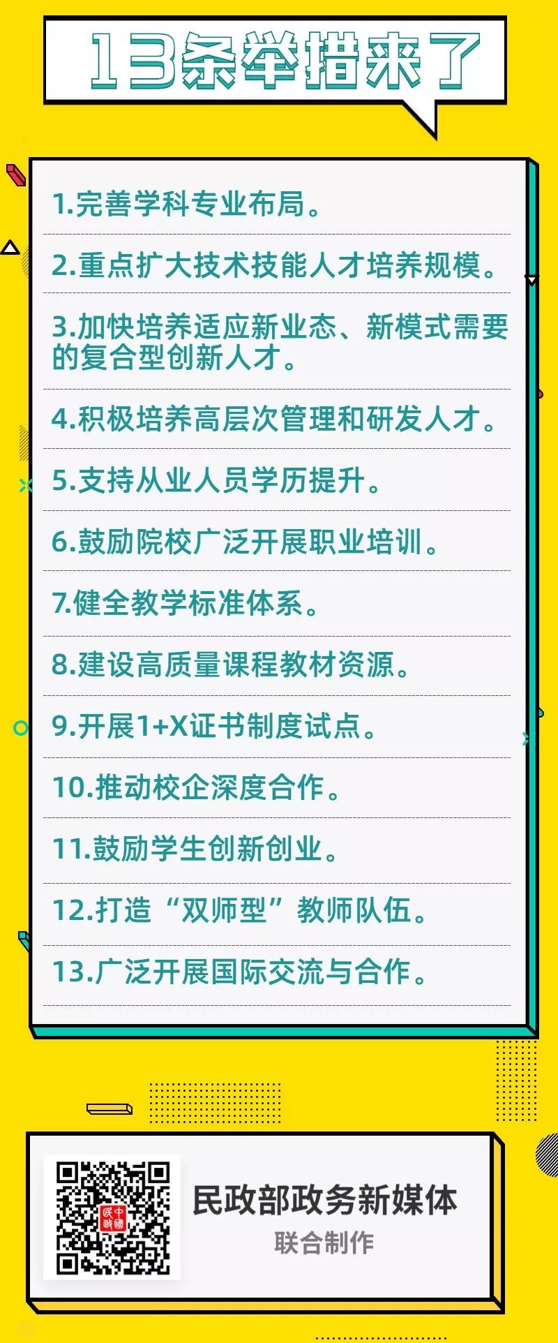 9.開(kāi)展1+X證書制度試點(diǎn)。積極招募、推動(dòng)職業(yè)教育培訓(xùn)評(píng)價(jià)組織聯(lián)合社會(huì)服務(wù)產(chǎn)業(yè)優(yōu)質(zhì)企業(yè)、職業(yè)院校共同研制家政服務(wù)、養(yǎng)老服務(wù)、母嬰照護(hù)等緊缺領(lǐng)域職業(yè)技能等級(jí)標(biāo)準(zhǔn)和證書,開(kāi)發(fā)教材和學(xué)習(xí)資源。支持院校學(xué)生在獲得學(xué)歷證書的同時(shí),積極取得緊缺領(lǐng)域相關(guān)職業(yè)技能等級(jí)證書,提高就業(yè)創(chuàng)業(yè)本領(lǐng),促進(jìn)高質(zhì)量就業(yè)。在家政服務(wù)、養(yǎng)老服務(wù)、托育服務(wù)等領(lǐng)域率先開(kāi)展1+X證書制度試點(diǎn),同步探索建設(shè)職業(yè)教育國(guó)家學(xué)分銀行。