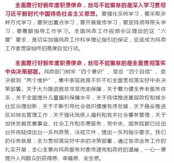 關(guān)于2019年工作部署,黃樹賢部長在全國民政工作視頻會(huì)議上的這段話,猶如催人奮進(jìn)的號(hào)角,回響在民政系統(tǒng)干部職工耳畔。