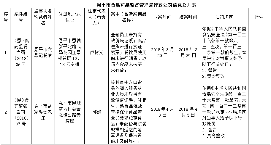 恩平市食品藥品監(jiān)督管理局行政處罰信息公開(kāi)