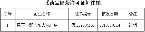 恩平市2016年10月藥品經(jīng)營(yíng)企業(yè)注銷公告