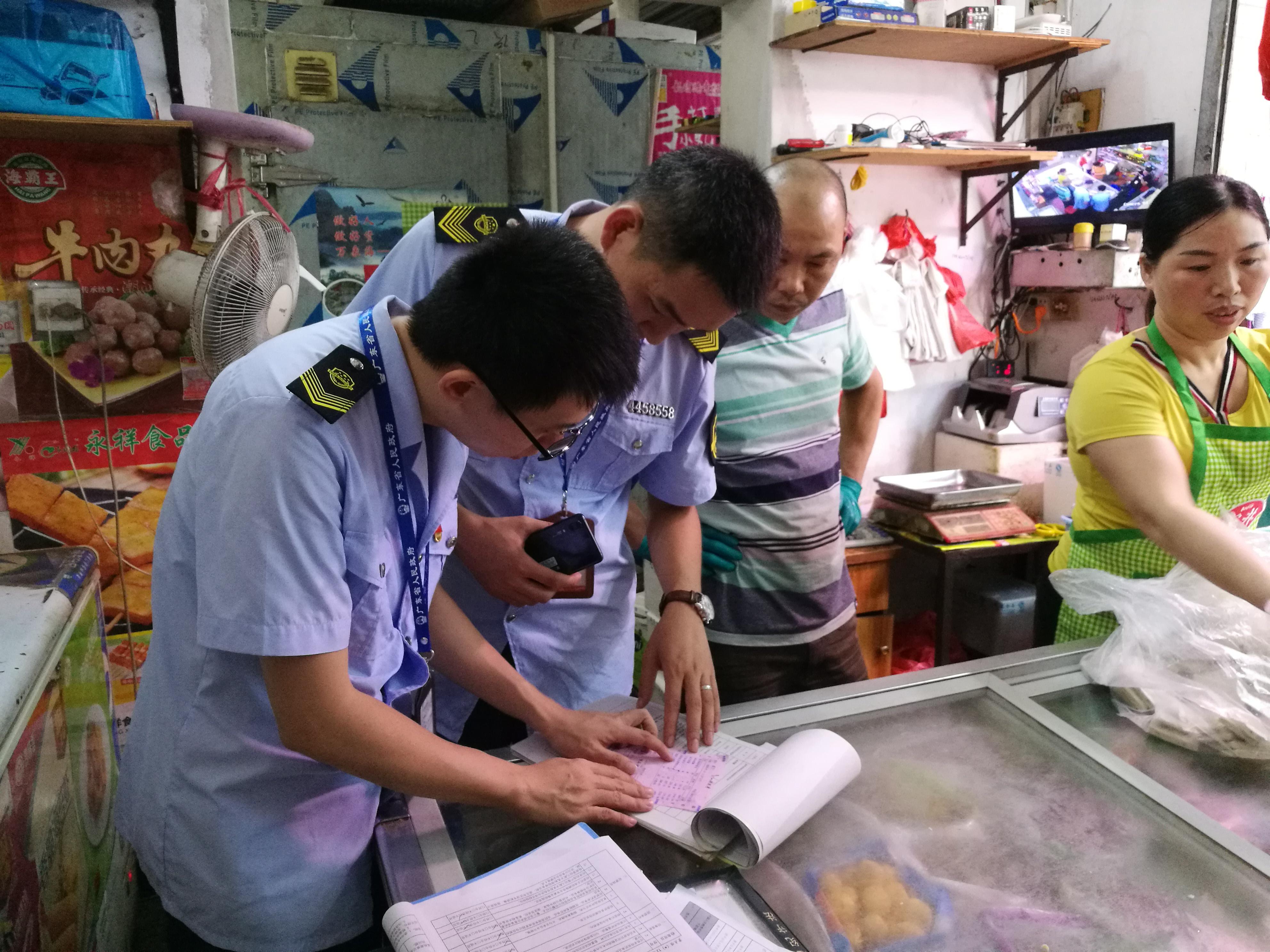 執(zhí)法人員現(xiàn)場檢查經(jīng)營戶索票索證情況