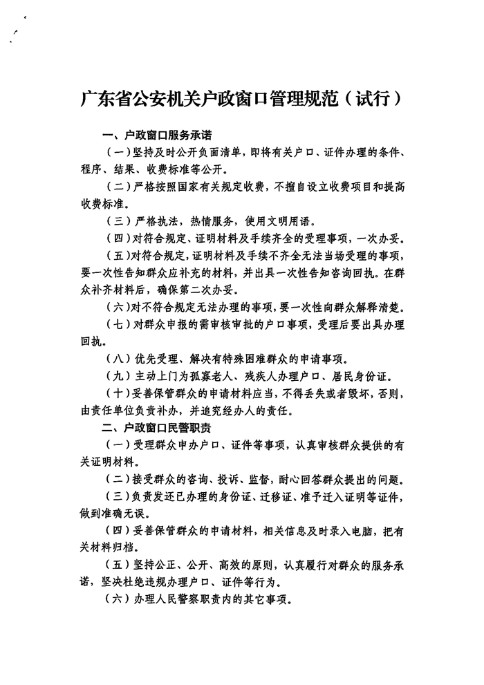 廣東省公安機(jī)關(guān)戶政窗口管理規(guī)范(試行)