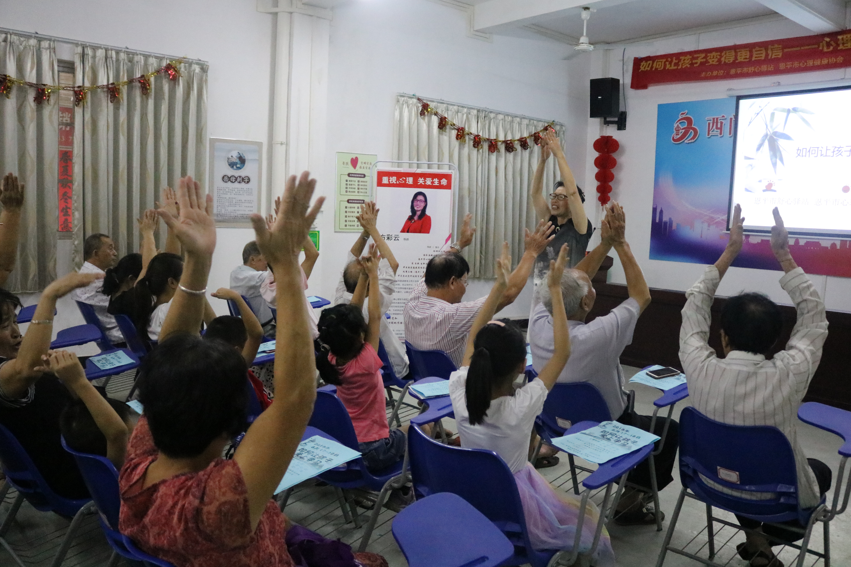 為了讓父母更加關(guān)注孩子的心理健康,恩平市舒心驛站、恩平市心理健康協(xié)會(huì)、九商三能幸福家庭俱樂(lè)部、恩平市新希望社會(huì)工作服務(wù)中心聯(lián)合恩平市圖書館于8月15日下午在西門康樂(lè)服務(wù)中心舉辦了一場(chǎng)《如何讓孩子變得更自信》心理健康的家庭教育知識(shí)講座,共吸引了60余人參加。