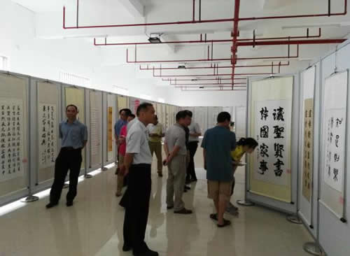 機(jī)關(guān)單位和社會(huì)各界群眾在欣賞書法作品