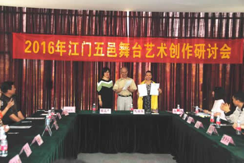 當(dāng)天,江門(mén)五邑各市區(qū)舞臺(tái)藝術(shù)創(chuàng)作人員代表共28人參加了“江門(mén)五邑舞臺(tái)藝術(shù)創(chuàng)作”研討會(huì),并推選“江門(mén)市優(yōu)秀創(chuàng)作人才”。其中,恩平市推送8名優(yōu)秀藝術(shù)家進(jìn)行參評(píng)。經(jīng)專(zhuān)家組評(píng)選,最后,我市盧堅(jiān)強(qiáng)、馮瑞萍、馮如孟三位藝術(shù)家獲選,并由江門(mén)市文廣新局領(lǐng)導(dǎo)頒發(fā)榮譽(yù)證書(shū)。我市三位獲選的藝術(shù)家均是創(chuàng)作經(jīng)驗(yàn)豐富的文藝工作領(lǐng)頭人,多年來(lái)一直默默為恩平的文藝創(chuàng)作作出大量的貢獻(xiàn)。