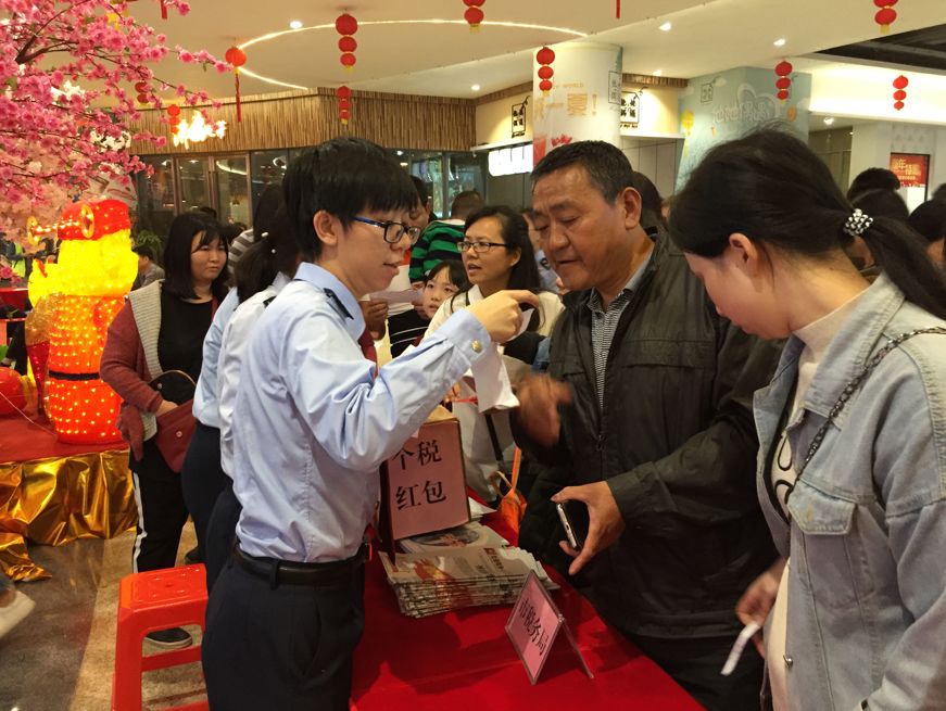 此外,在觀眾席旁,稅務(wù)部門還設(shè)置了問答活動的平臺,現(xiàn)場派發(fā)《江門日報》走進(jìn)專版等宣傳資料,為了搶得答題機(jī)會,市民需要排隊等候,他們在宣傳資料上面可以查看相關(guān)內(nèi)容,然后進(jìn)行答題,答對者可贏得“紅包”等相應(yīng)的獎品。在猜燈謎區(qū)域,部分市民則拿出手機(jī)搜索答案。