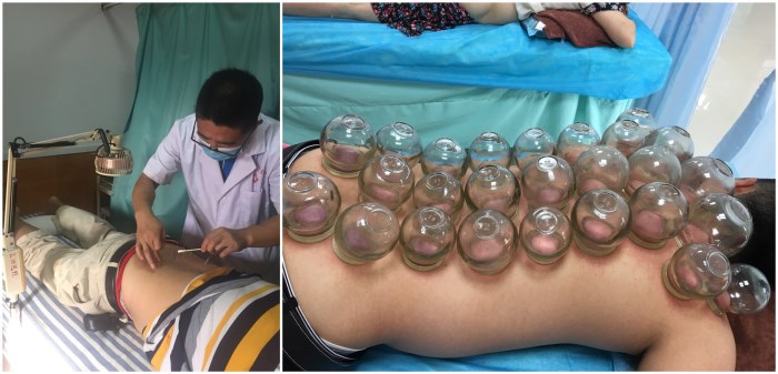 君堂鎮(zhèn)江洲衛(wèi)生院開展針灸治療(左),平石社區(qū)衛(wèi)生服務(wù)中心開展拔罐治療