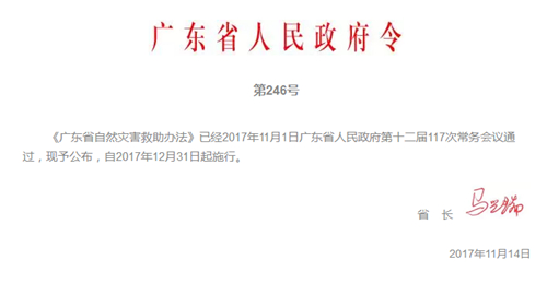 廣東省人民政府公布《廣東省自然災(zāi)害救助辦法》