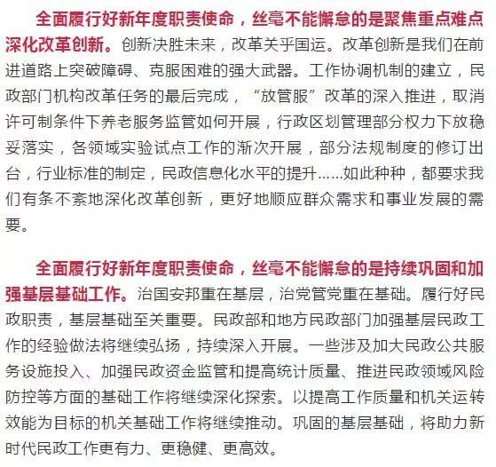 關(guān)于2019年工作部署,黃樹賢部長在全國民政工作視頻會(huì)議上的這段話,猶如催人奮進(jìn)的號(hào)角,回響在民政系統(tǒng)干部職工耳畔。