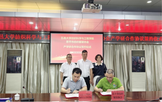 隨后,五邑大學(xué)紡織科學(xué)與工程學(xué)院和恩平市紡織服裝協(xié)會共同簽訂《產(chǎn)學(xué)研合作協(xié)議》。