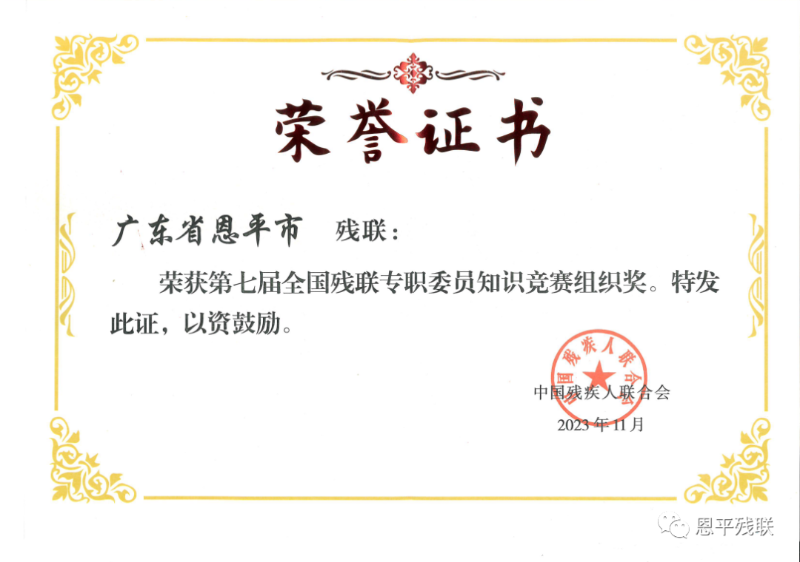 喜報!恩平市殘聯(lián)獲中國殘聯(lián)表彰