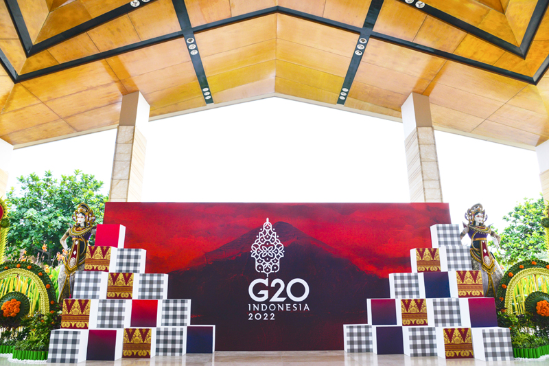 這是在印度尼西亞巴厘島拍攝的二十國集團領導人第十七次峰會會場外的標識(2022年11月11日攝)。新華社記者 徐欽 攝