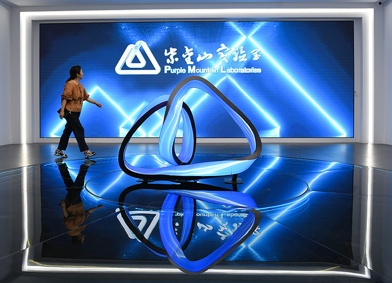 一名女士經(jīng)過(guò)紫金山實(shí)驗(yàn)室展廳入口(2023年7月6日攝)。新華社記者 季春鵬 攝