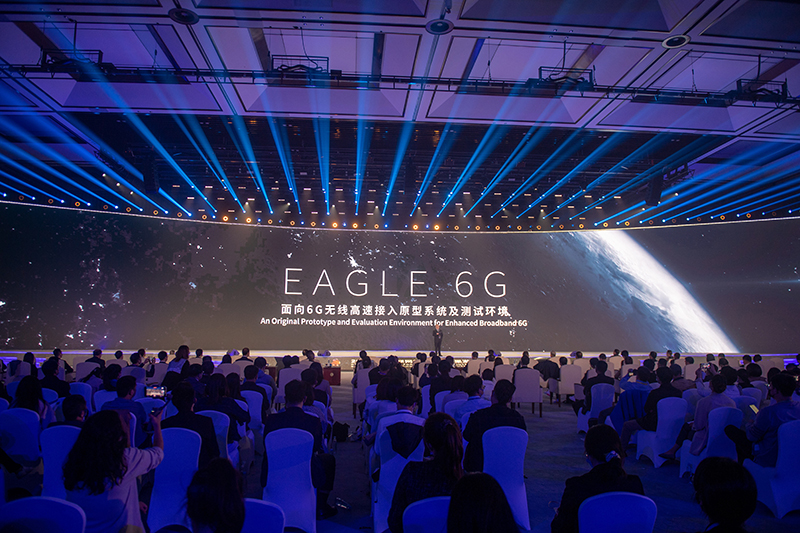 在浙江烏鎮(zhèn)舉行的2022年世界互聯(lián)網(wǎng)大會(huì)烏鎮(zhèn)峰會(huì)上拍攝的“EAGLE 6G:面向6G無(wú)線高速接入原型系統(tǒng)及測(cè)試環(huán)境”發(fā)布現(xiàn)場(chǎng)(2022年11月9日攝)。新華社記者 江漢 攝