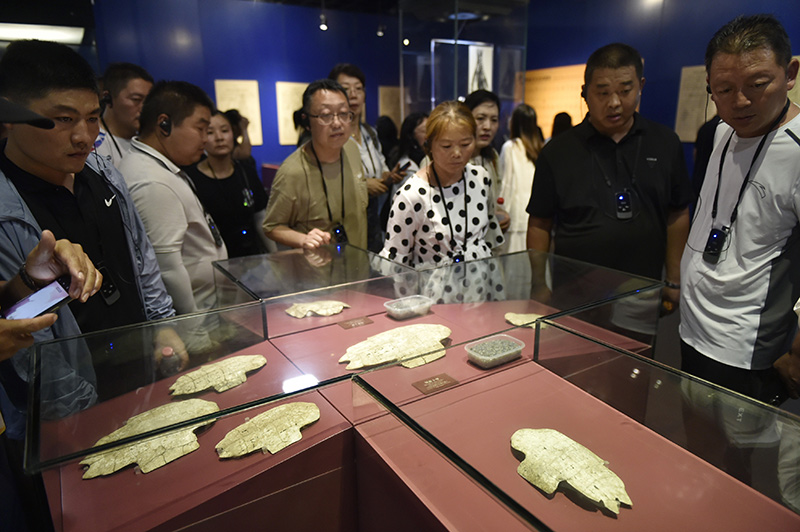 2023年8月10日,觀眾在河南省安陽市的殷墟博物館參觀。新華社記者 魯鵬 攝