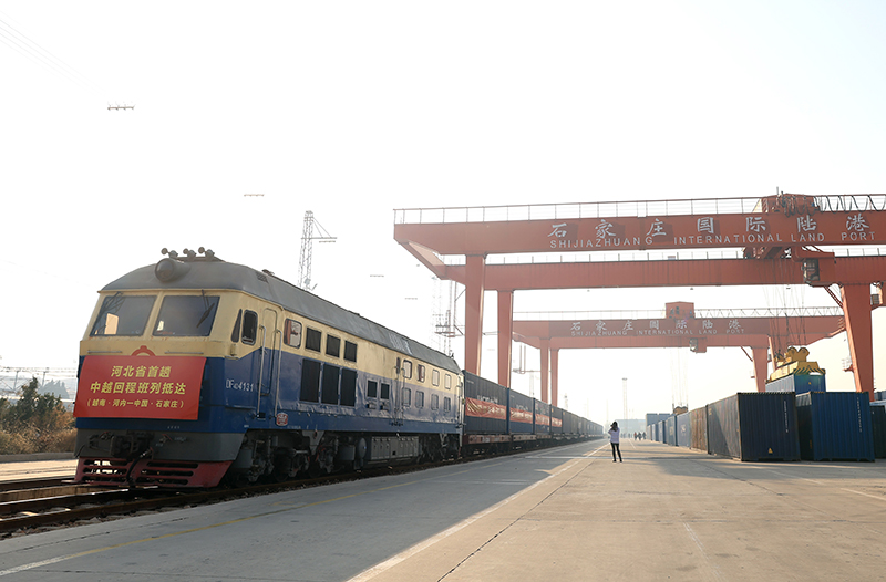 河北省首趟中越回程班列抵達(dá)石家莊國際陸港(2023年12月5日攝)。新華社發(fā)(梁子棟?攝)